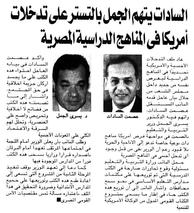 السادات يتهم الجمل بالتستر على تدخلات امريكا فى المناهج الدراسية المصرية